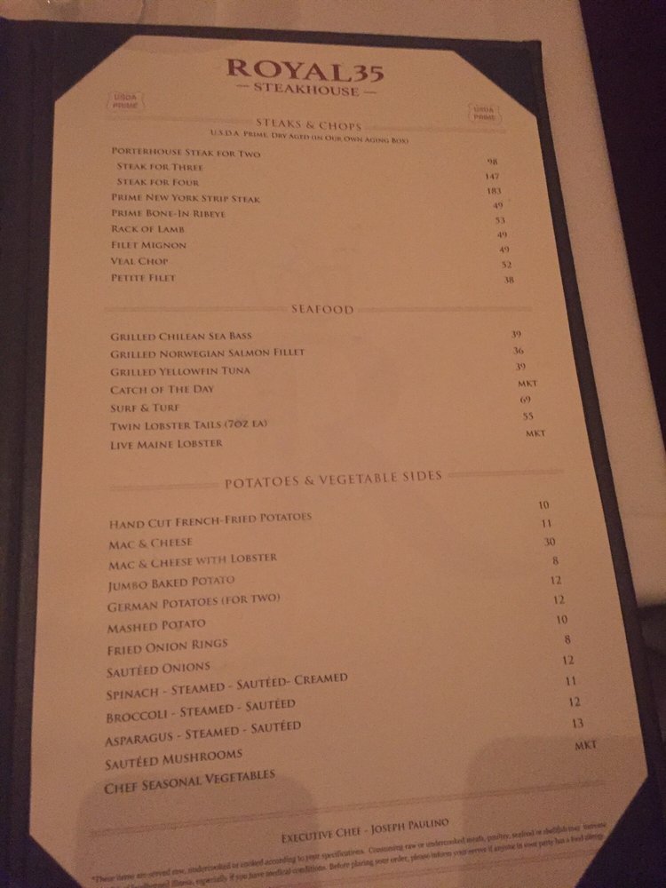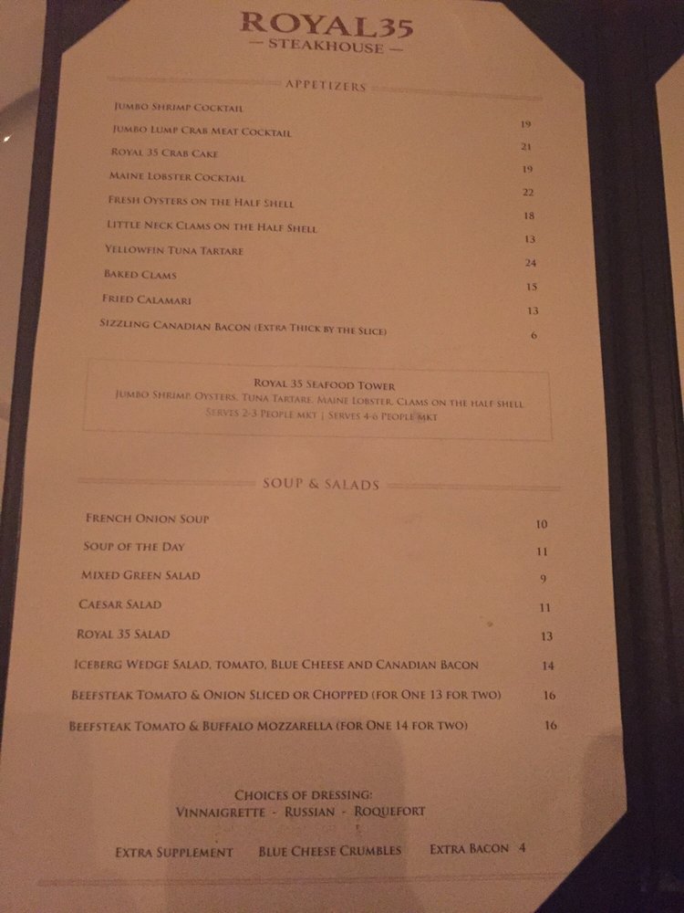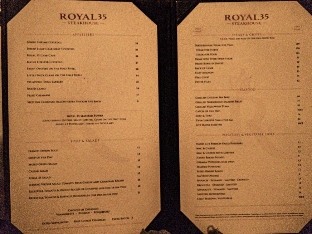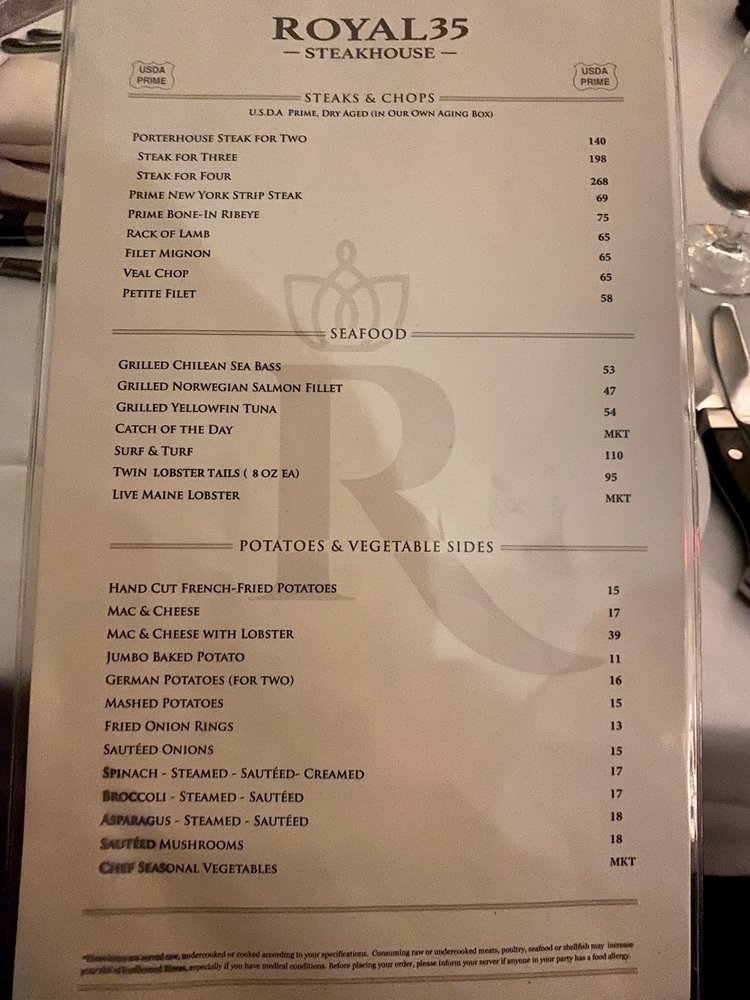 Royal 35 Steakhouse Menu (Update 2025)